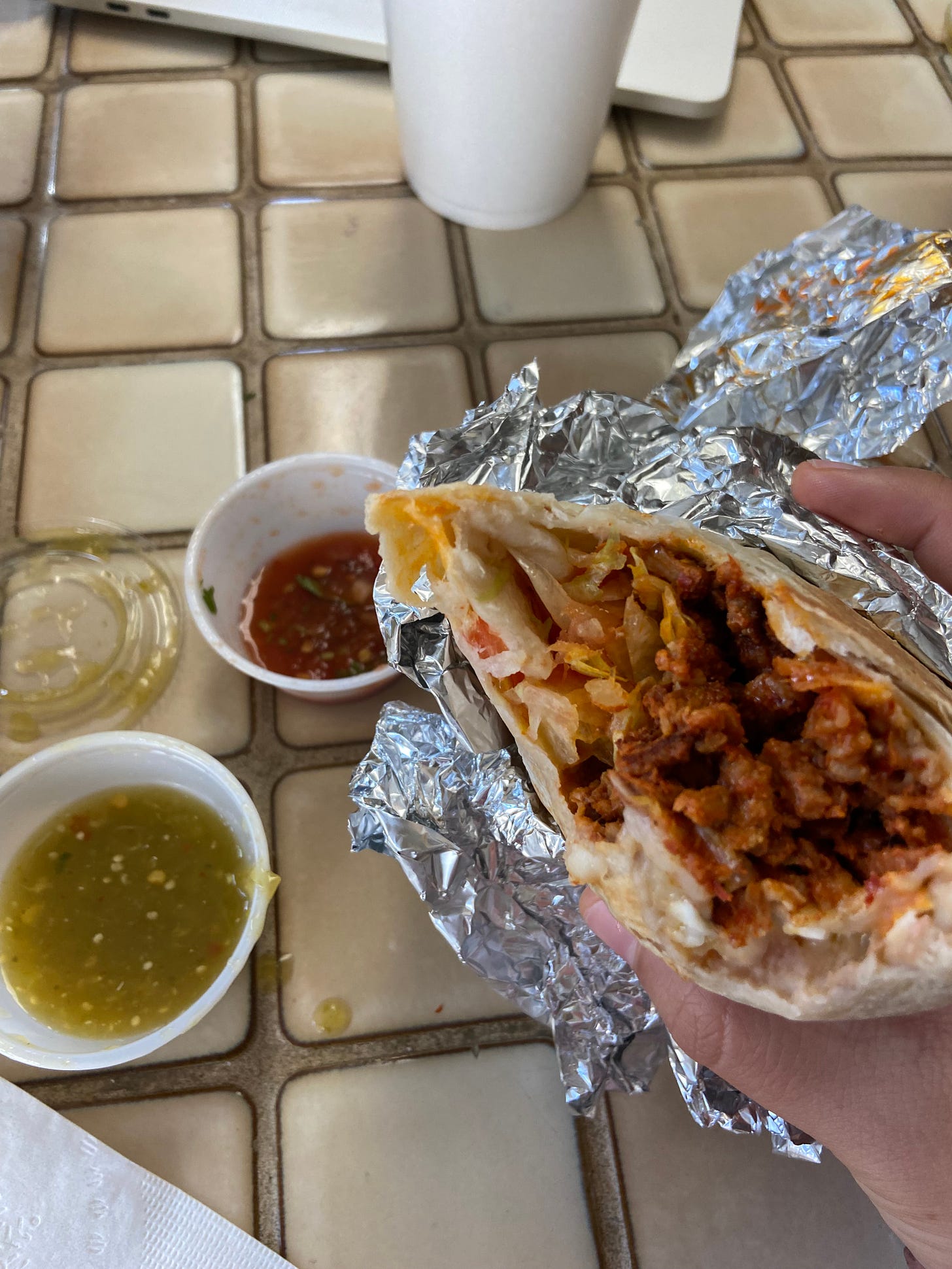 Still thinking about this burrito I thoroughly ate alongside Alexander last Friday. What makes it so damn good is their al pastor, yes, but you can’t not acknowledge the use of refried beans in here as well. This particular meal makes me emotional, for many reasons.